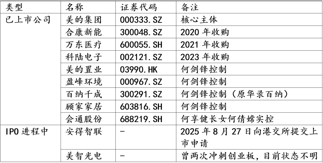 家族色彩浓厚:何享健子女(如何剑锋、何倩嫦)在版图中扮演重要角色,控制着多家上市公司。